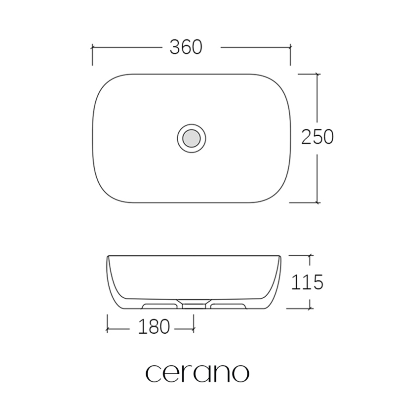 CERANO - Umyvadlo keramické Carlo - na desku - bílá lesklá - 36x25 cm