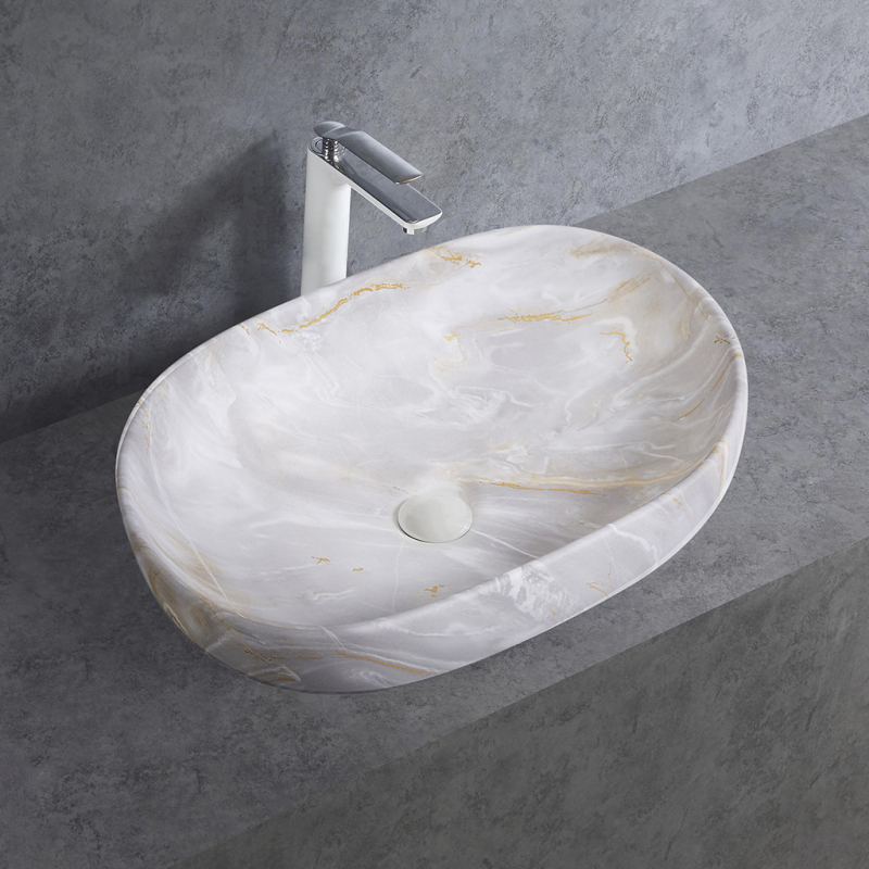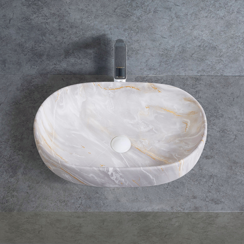 CERANO - Umyvadlo keramické Deno - na desku - mramor světlý - 59x41 cm