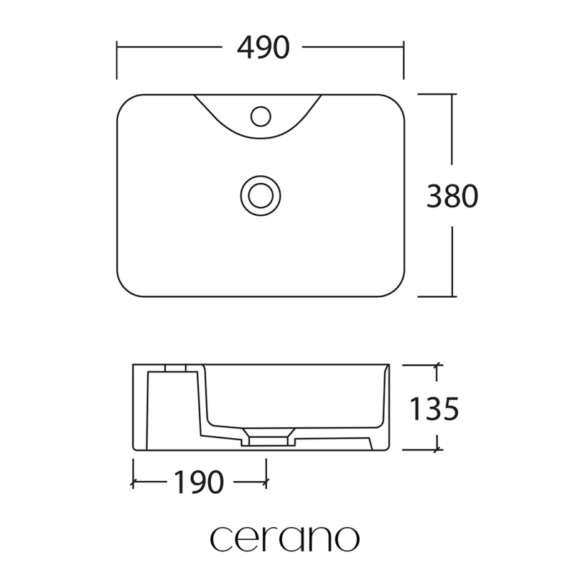 CERANO - Umyvadlo keramické Lorenzo - na desku - bílá lesklá - 49x38 cm