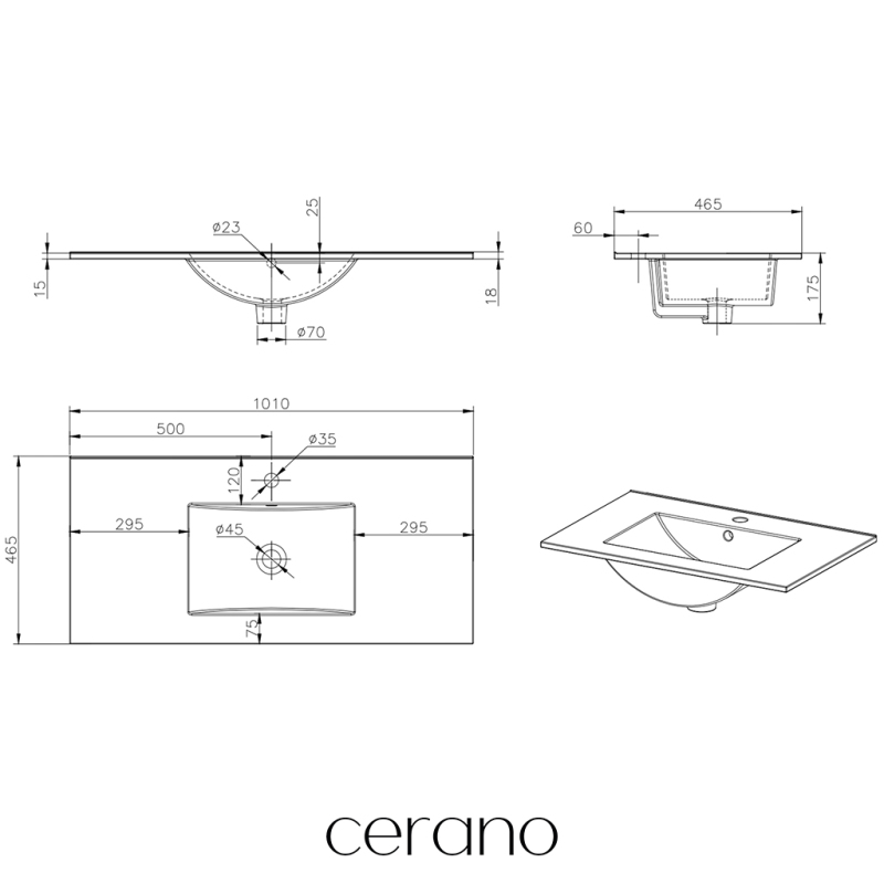 CERANO - Umyvadlo keramické Todo - nábytkové - bílá lesklá - 101x46,5 cm