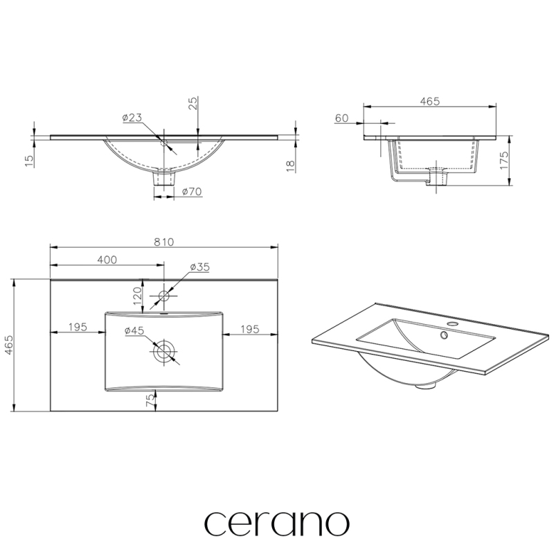 CERANO - Umyvadlo keramické Todo - nábytkové - bílá lesklá - 81x46,5 cm