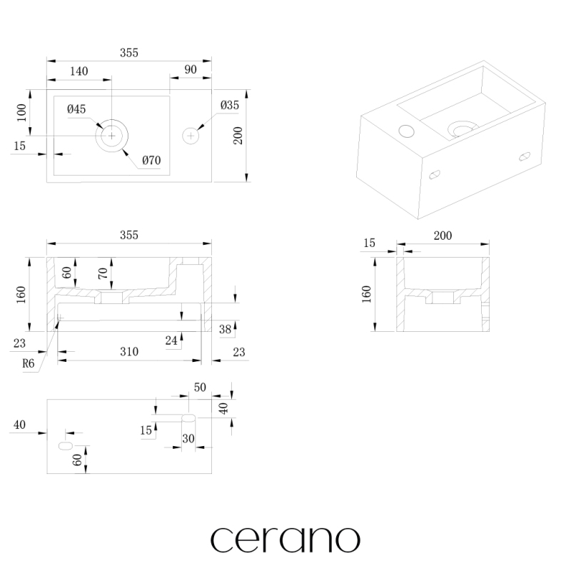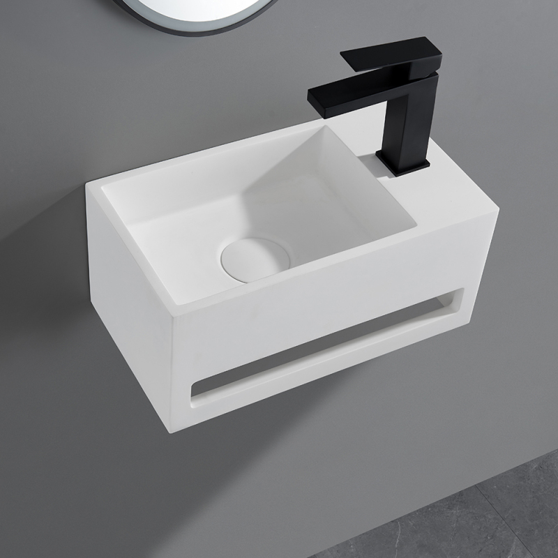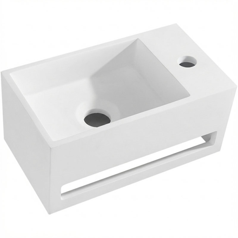 CERANO - Umývátko z litého mramoru Filo, závěsné pravé - bílá matná - 35,5x20 cm