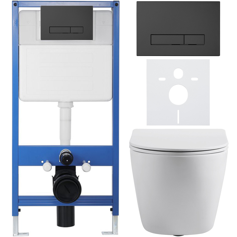 CERANO - Kompletní podomítkový WC set Lite/Cesso - bílá matná - WC tlačítko Slim, černé matné - předstěnová instalace/sádrokarton - 49x36 cm