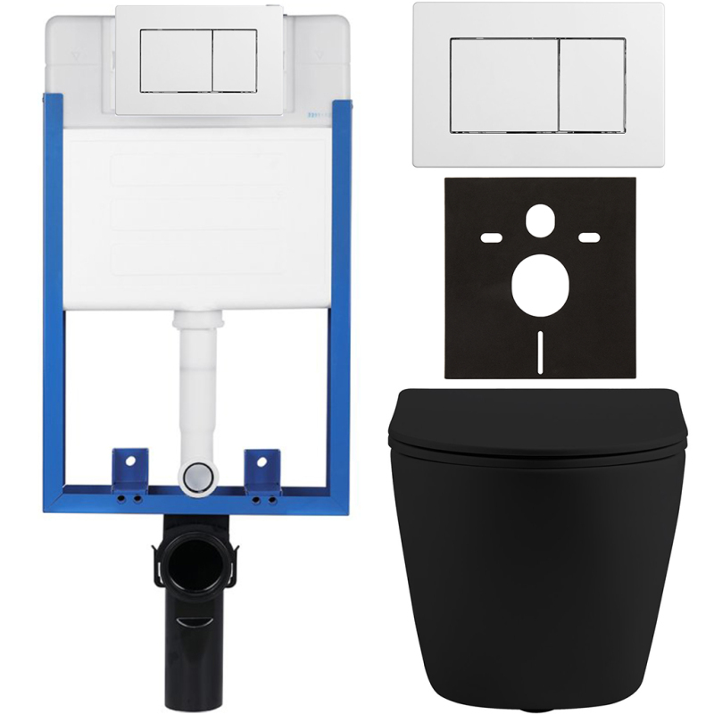 CERANO - Kompletní podomítkový WC set Lite/Cesso - černá matná - WC tlačítko Classic, bílé - k zazdění - 49x36 cm