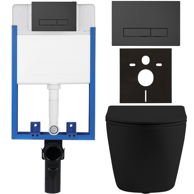 CERANO - Kompletní podomítkový WC set Lite/Cesso - černá matná - WC tlačítko Slim, černé matné - k zazdění - 49x36 cm