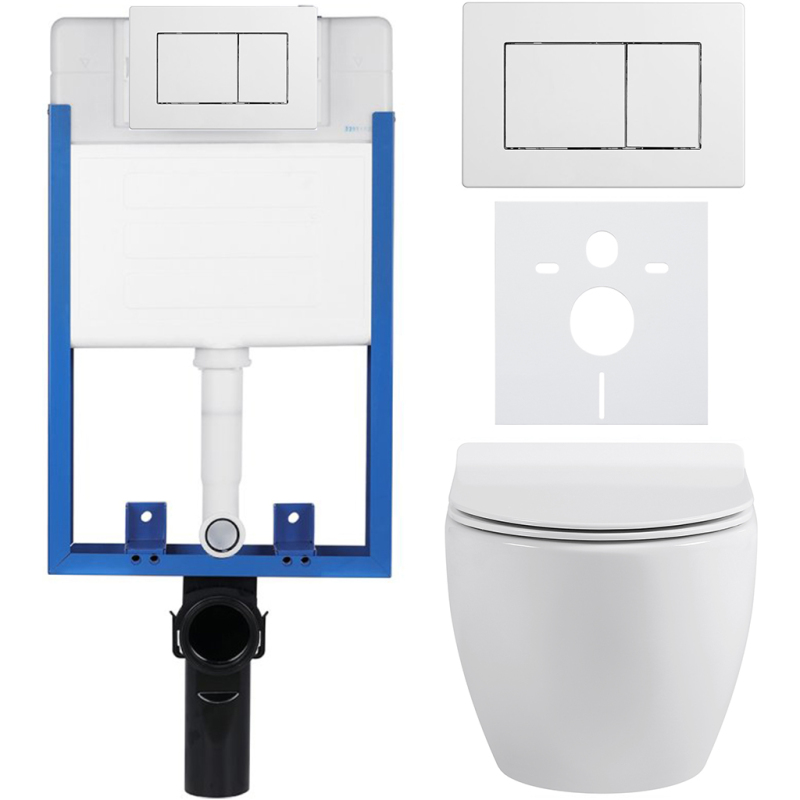 CERANO - Kompletní podomítkový WC set Lite/Dure - bílá lesklá - WC tlačítko Classic, bílé - k zazdění - 51x35 cm
