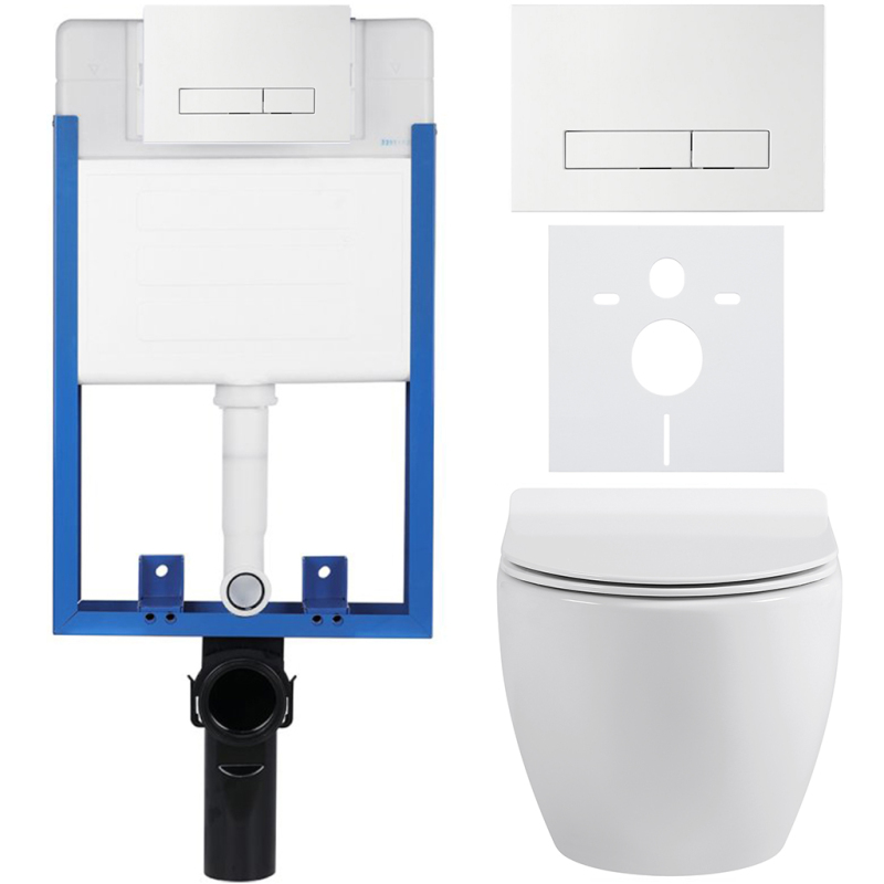 CERANO - Kompletní podomítkový WC set Lite/Dure - bílá lesklá - WC tlačítko Slim, bílé - k zazdění - 51x35 cm