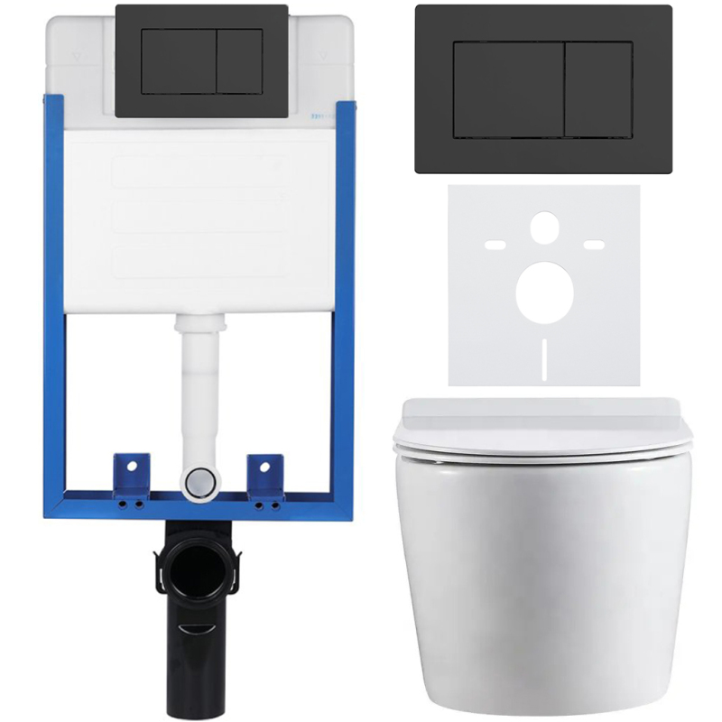 CERANO - Kompletní podomítkový WC set Lite/Felci - bílá lesklá - WC tlačítko Classic, černé matné - k zazdění - 52,5x36 cm