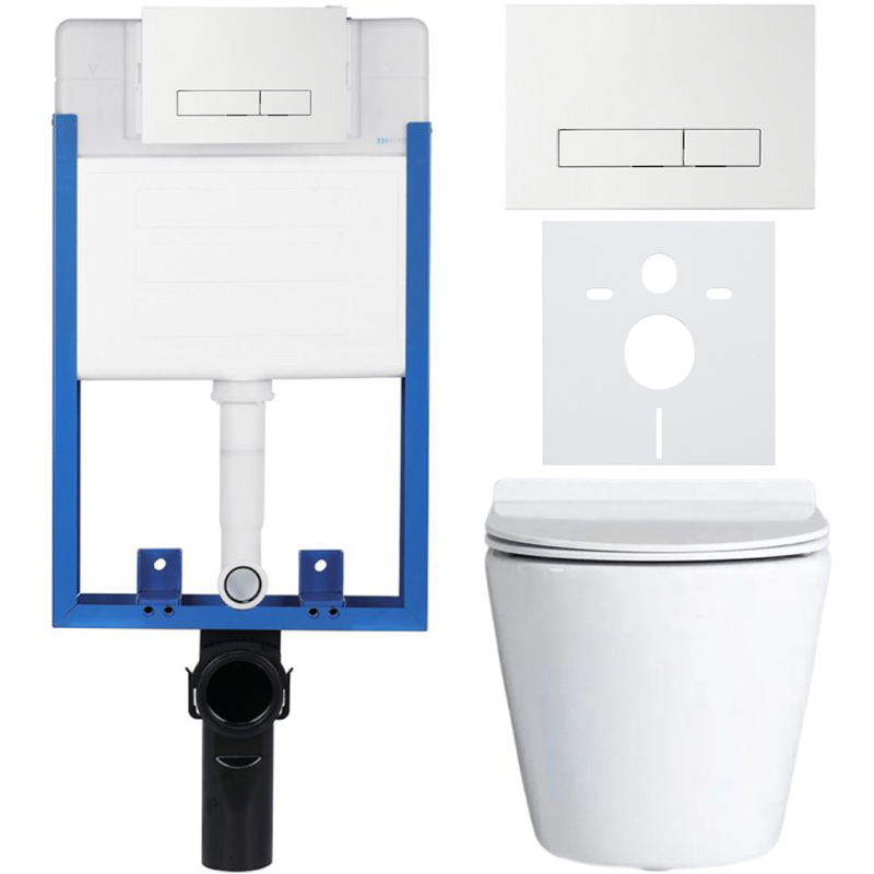CERANO - Kompletní podomítkový WC set Lite/Norbi - bílá lesklá - WC tlačítko Slim, bílé - k zazdění - 48,5x36,5 cm