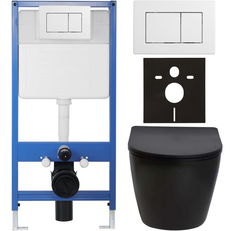 CERANO - Kompletní podomítkový WC set Lite/Verde - černá matná - WC tlačítko Classic, bílé - předstěnová instalace/sádrokarton - 49x36 cm