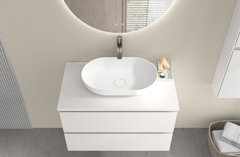 Koupelnové desky jsou vyrobeny z MDF lamina (středně hustá dřevovláknitá deska) s nalisovanou melaminovou fólií, která je odolná vůči vlhkosti, poškrábání, UV záření a běžným čisticím prostředkům. Povrch je hladký, tvrdý, homogenní a snadno se čistí. MDF desky se nekroutí jako masivní dřevo. Pokud dojde k mechanickému narušení laminace, samotné MDF jádro může navlhnout.