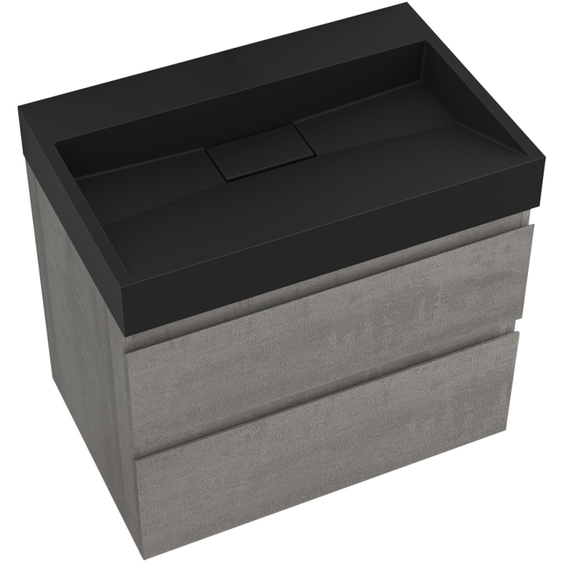 CERANO - Koupelnová skříňka Carole - betonově šedá + umyvadlo z lit. mramoru Vita - černá matná - 70x58x46 cm