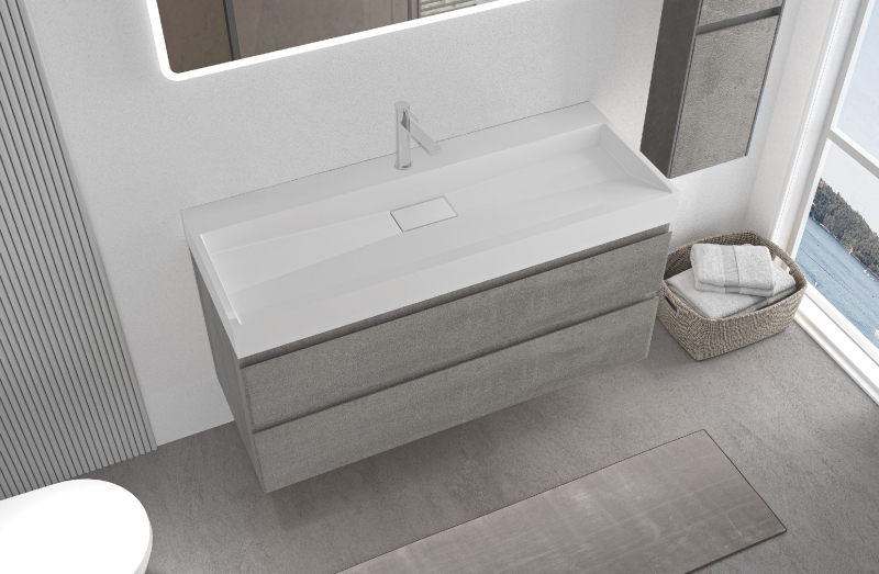 CERANO - Koupelnová skříňka Carole - betonově šedá + umyvadlo z lit. mramoru Vita - otvor - bílá matná - 100x58x46 cm