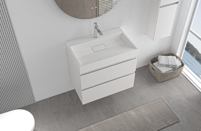 Koupelnové skříňky jsou vyrobeny z MDF lamina (středně hustá dřevovláknitá deska) s nalisovanou melaminovou fólií, která je odolná vůči vlhkosti, poškrábání, UV záření a běžným čisticím prostředkům. Povrch je hladký, tvrdý, homogenní a snadno se čistí. MDF desky se nekroutí jako masivní dřevo. Pokud dojde k mechanickému narušení laminace, samotné MDF jádro může navlhnout.