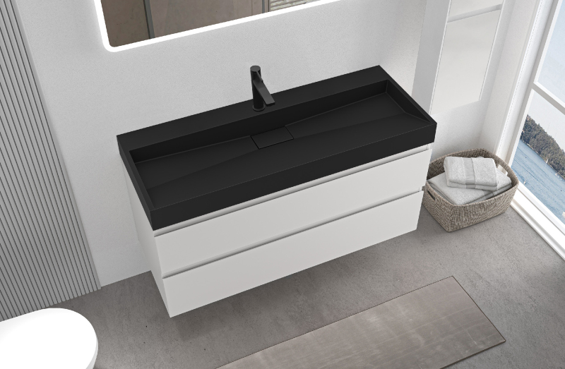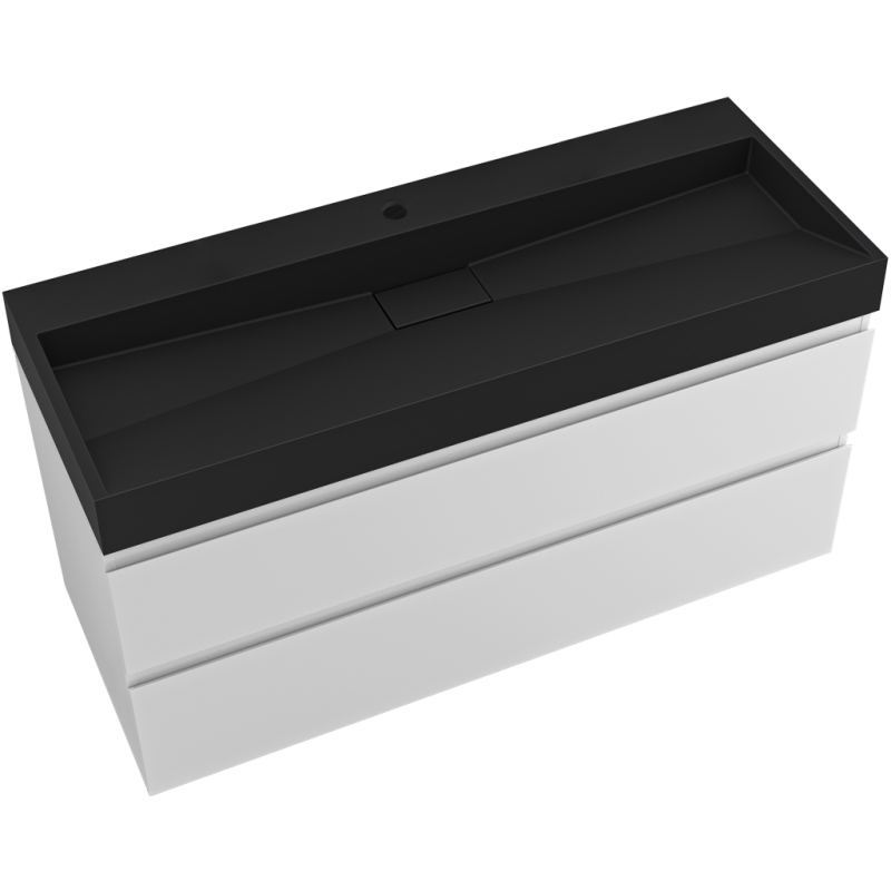 CERANO - Koupelnová skříňka Carole - bílá matná + umyvadlo z lit. mramoru Vita - otvor - černá matná- 100x58x46 cm