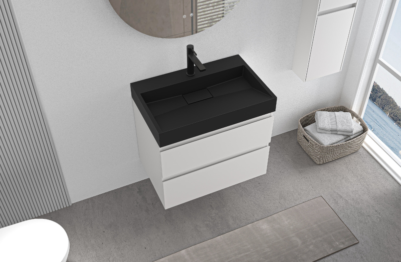 CERANO - Koupelnová skříňka Carole - bílá matná + umyvadlo z lit. mramoru Vita - otvor - černá matná- 70x58x46 cm