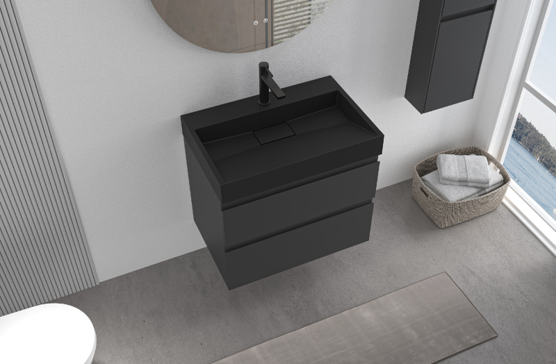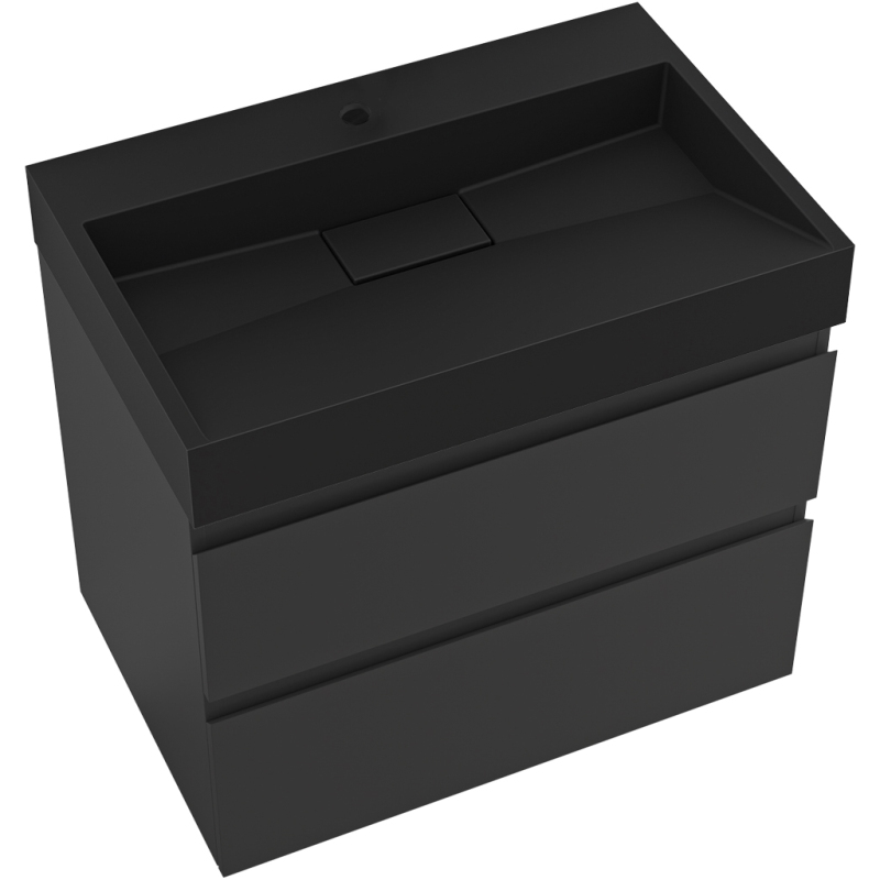 CERANO - Koupelnová skříňka Carole - černá matná + umyvadlo z lit. mramoru Vita - otvor - černá matná - 70x58x46 cm