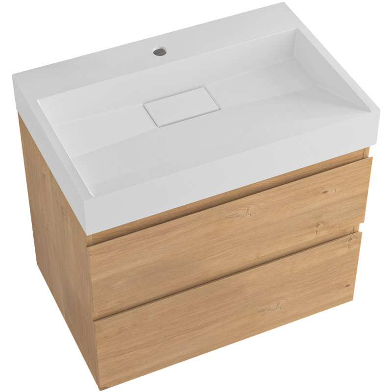 CERANO - Koupelnová skříňka Carole - dub medový + umyvadlo z lit. mramoru Vita - otvor - bílá lesklá - 70x58x46 cm