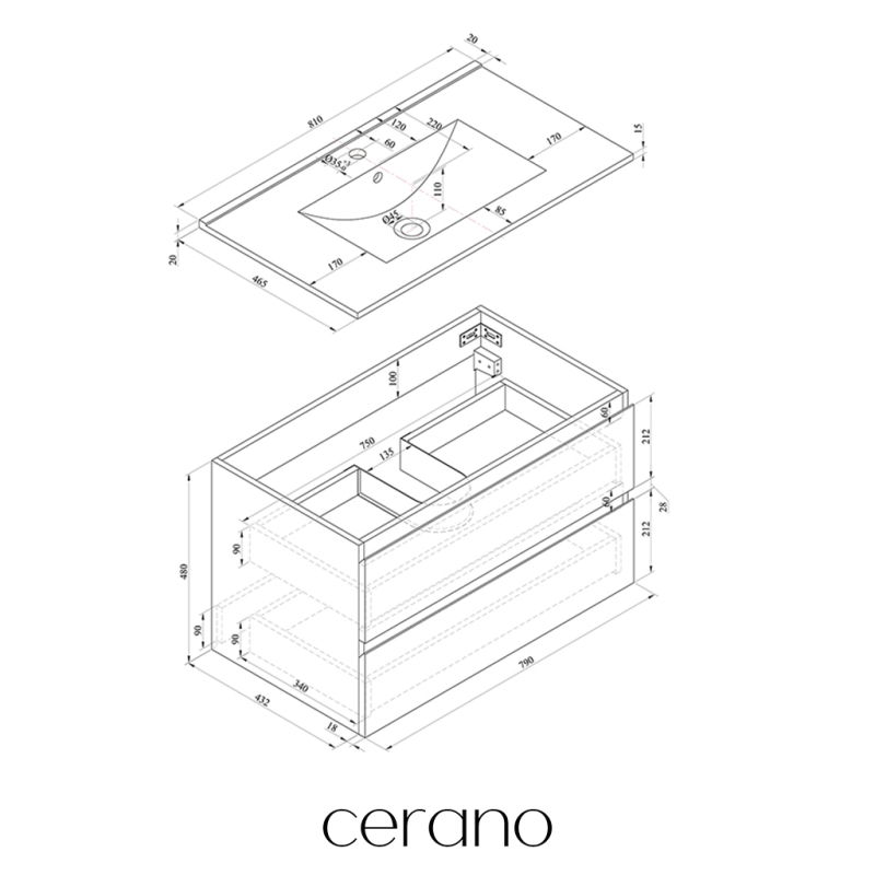 V rámci této série nabízíme širokou škálu rozměrů, abychom uspokojili různé potřeby našich zákazníků. Všechny koupelnové skříňky značky Cerano jsou navrženy tak, aby byly plně kompatibilní s deskami a umyvadly Cerano ve stejných rozměrech, což zajišťuje bezproblémovou instalaci a dokonalé sladění.