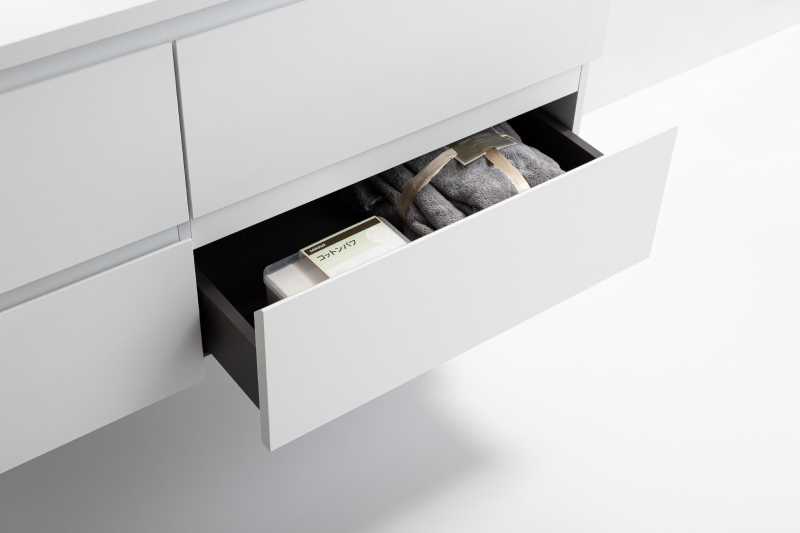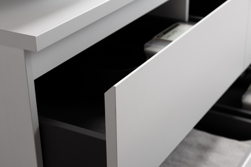 Funkce tichého dovírání (Quiet Close) zajišťuje, že se zásuvky zavírají hladce a bez hluku. Tento mechanismus minimalizuje opotřebení nábytku a přispívá k dlouhodobé životnosti skříňky. Umožňuje tiché a pohodlné používání, což oceníte zejména v ranních a nočních hodinách.