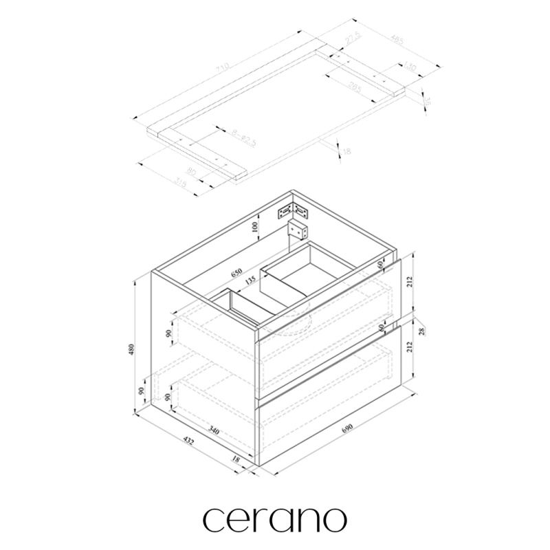 V rámci této série nabízíme širokou škálu rozměrů, abychom uspokojili různé potřeby našich zákazníků. Všechny koupelnové skříňky značky Cerano jsou navrženy tak, aby byly plně kompatibilní s deskami a umyvadly Cerano ve stejných rozměrech, což zajišťuje bezproblémovou instalaci a dokonalé sladění.
