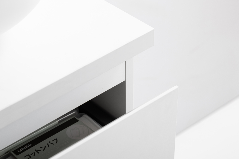 Skříňka je určena k montáži na zeď a je vybavena regulovatelným kováním, umístěným na korpusu skříňky pod horním vlysem, umožňujícím výškové i rovinné seřízení. V zásuvce je připraven krytý výřez pro instalaci umyvadlového sifonu.