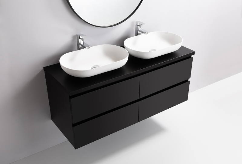 CERANO - Koupelnová skříňka Carole s deskou pod umyvadlo - 36 mm - černá matná - 121x51,6x46,5 cm