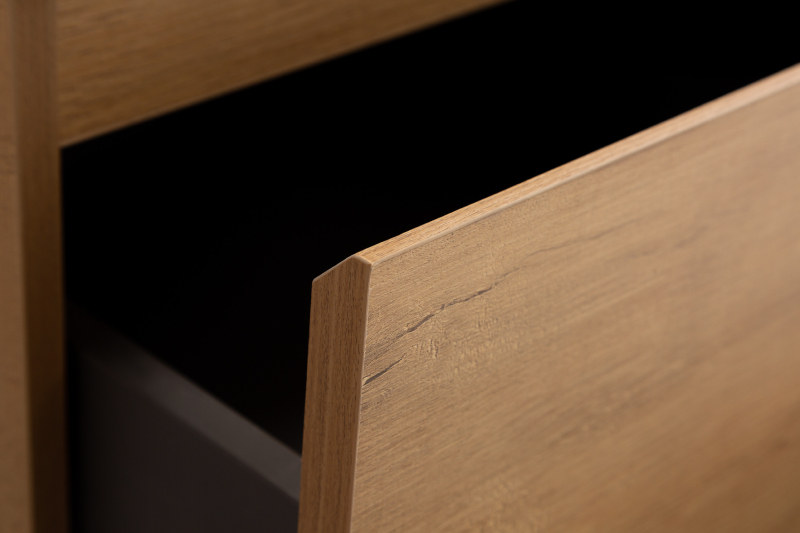 Díky integrovanému soft-close mechanismu se dvířka a zásuvky zavírají plynule a tiše – hydraulický doraz tlumí náraz, zabraňuje bouchání a snižuje opotřebení, takže nábytek vydrží déle a používání je pohodlné.