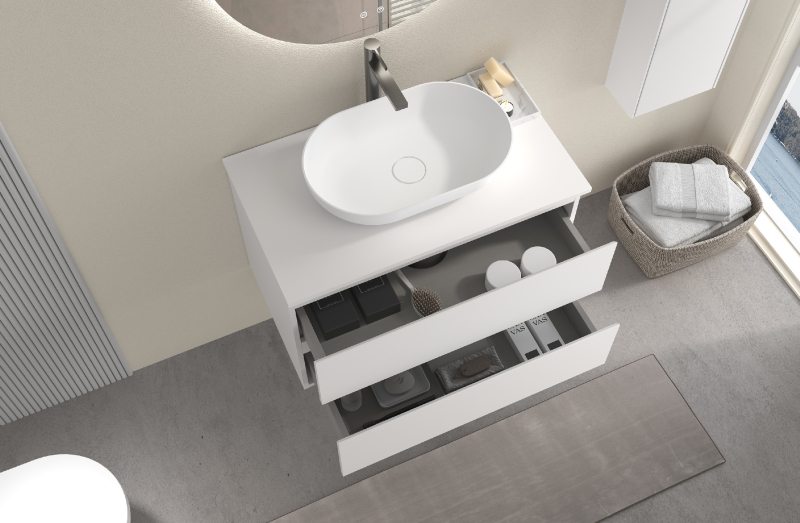 Ke skříňkám vždy nabízíme plně kompatibilní umyvadla nebo desky, u kterých máme jistotu správného usazení a funkčnosti. U umyvadel od jiných dodavatelů je použití možné, ale nemůžeme zaručit plnou kompatibilitu a bezproblémovou montáž.