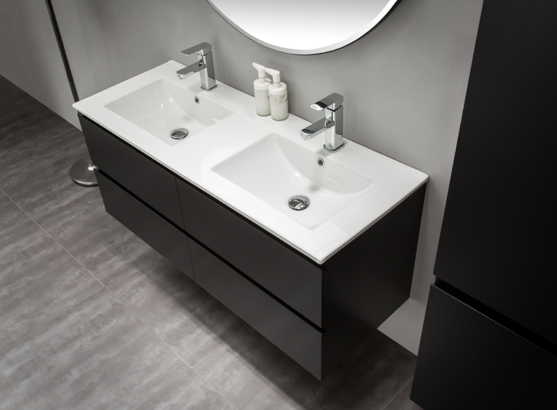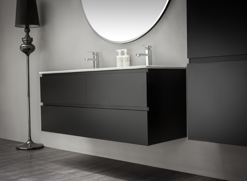CERANO - Koupelnová skříňka pod umyvadlo Carole - černá matná - 138x48x45 cm