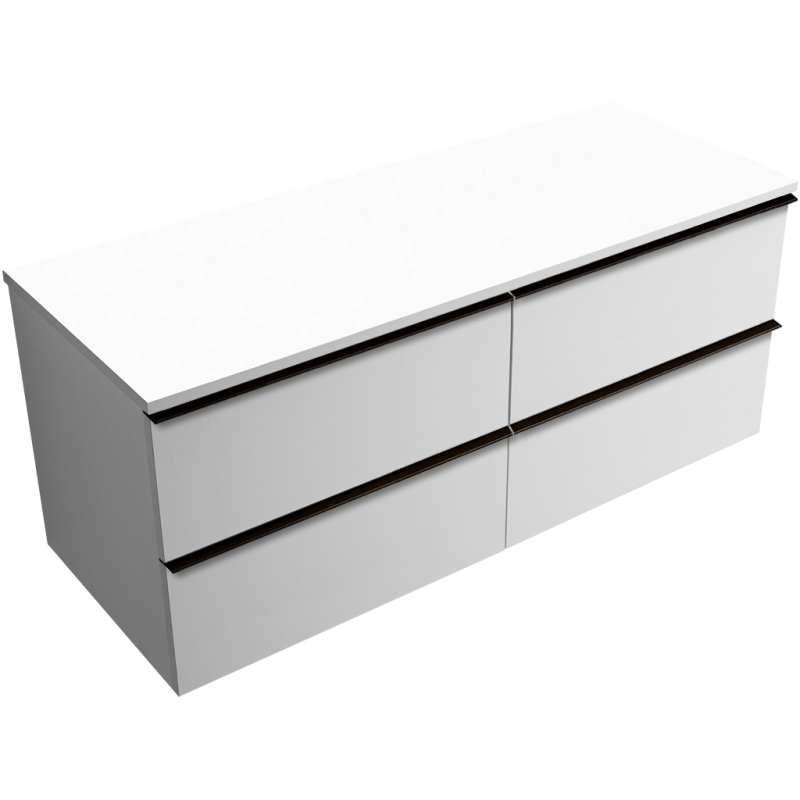 CERANO - Koupelnová skříňka pod umyvadlo s úchytkou/deskou pod umyvadlo Velora - 18 mm - bílá matná, černá úchytka - 138x53x45,2 cm