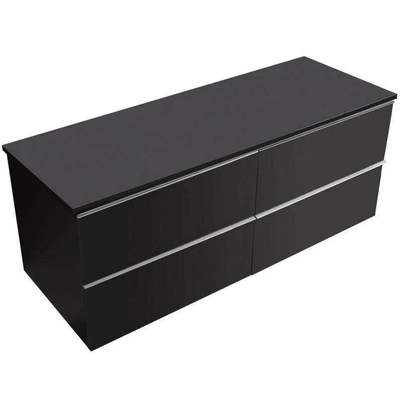 CERANO - Koupelnová skříňka pod umyvadlo s úchytkou/deskou pod umyvadlo Velora - 18 mm - černá matná, chromová úchytka - 160x49,8x45,2 cm