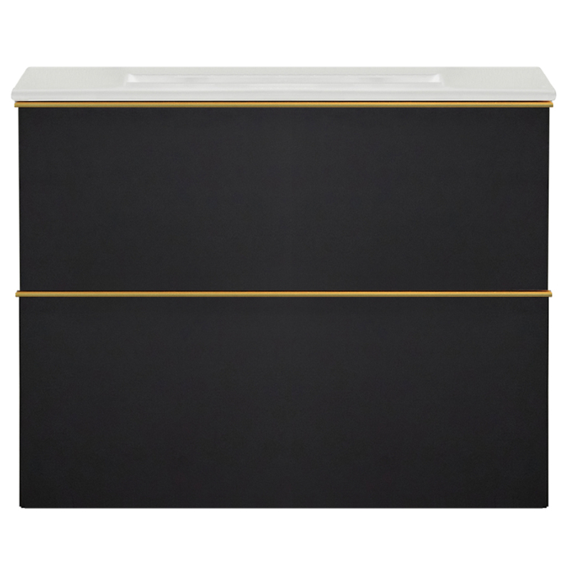CERANO - Koupelnová skříňka pod umyvadlo s úchytkou/deskou pod umyvadlo Velora - 18 mm - černá matná, zlatá úchytka - 60x49,8x46 cm