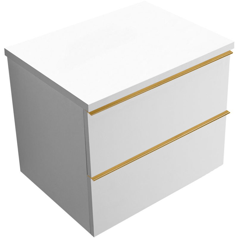 CERANO - Koupelnová skříňka pod umyvadlo s úchytkou/deskou pod umyvadlo Velora - 36 mm - bílá matná, zlatá úchytka - 69x49,8x46 cm