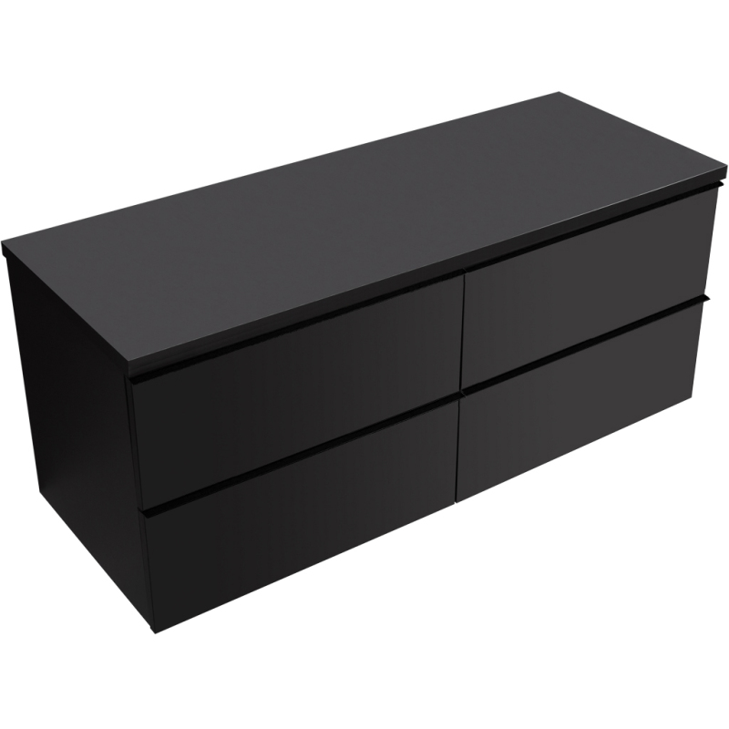 CERANO - Koupelnová skříňka pod umyvadlo s úchytkou/deskou pod umyvadlo Velora - 36 mm - černá matná, černá úchytka - 138x49,8x45,2 cm