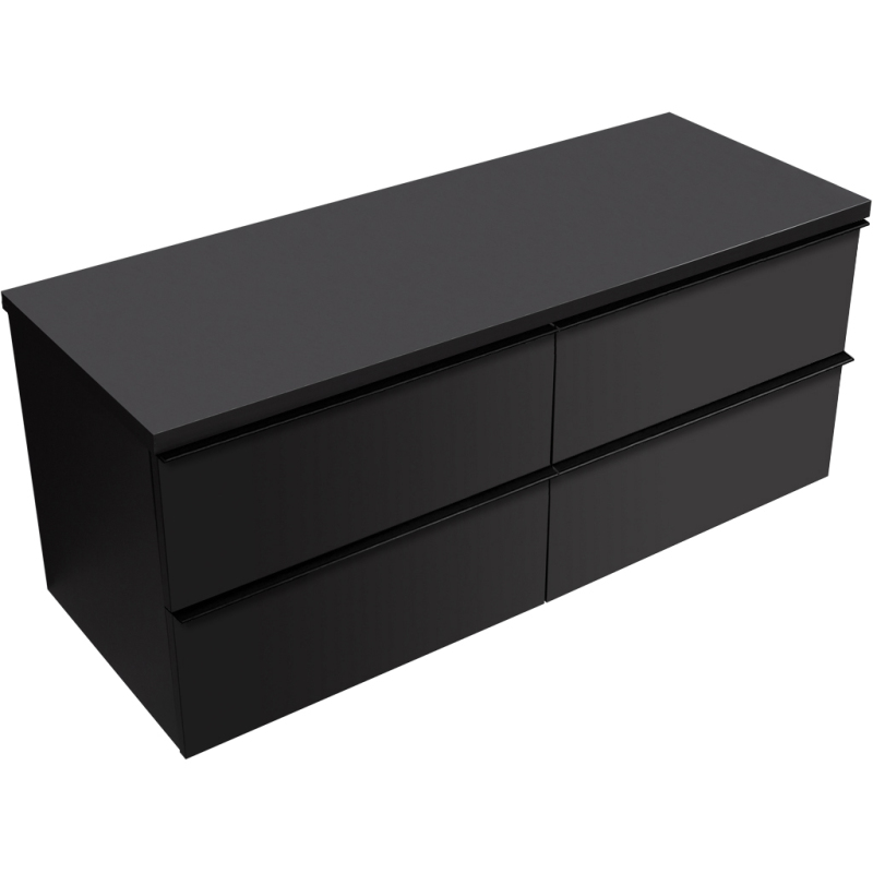 CERANO - Koupelnová skříňka pod umyvadlo s úchytkou/deskou pod umyvadlo Velora - 36 mm - černá matná, černá úchytka - 138x53x45,2 cm