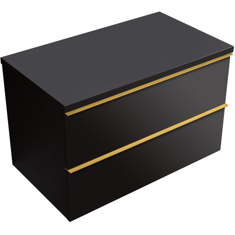 CERANO - Koupelnová skříňka pod umyvadlo s úchytkou/deskou pod umyvadlo Velora - 36 mm - černá matná, zlatá úchytka - 99x53x46 cm