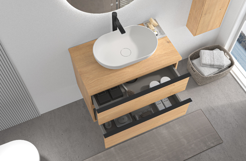 Naše koupelnové skříňky přichází již ve smontovaném stavu, což vám ušetří čas i námahu při jejich instalaci. Jsou vyrobené z kvalitních materiálů a nabízejí dostatek úložného prostoru pro všechny vaše potřeby.