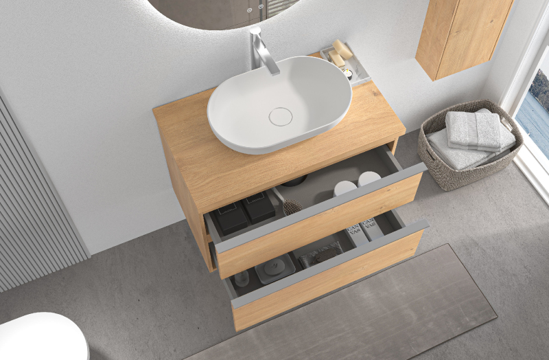Skříňka je součástí vzájemně kompatibilní řady koupelnového nábytku, snadno ji zkombinujete s ostatními prvky, rozšíříte úložný prostor a zachováte jednotný styl celé koupelny.