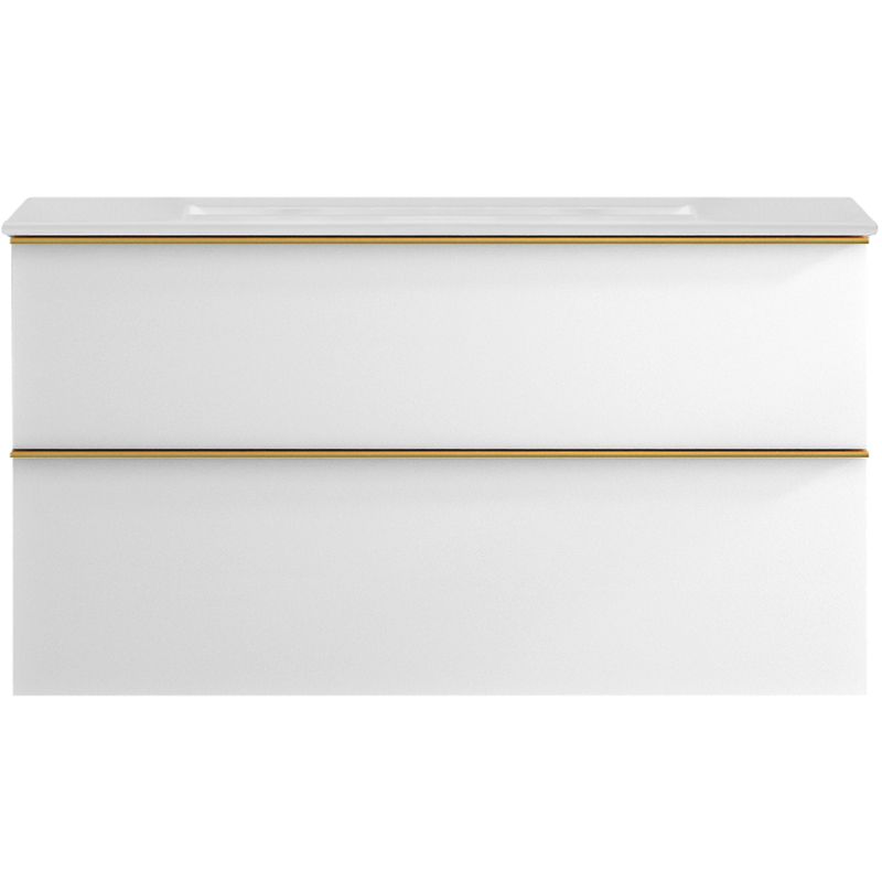 CERANO - Koupelnová skříňka pod umyvadlo s úchytkou Velora - bílá matná, zlatá úchytka - 100x49,8x46 cm