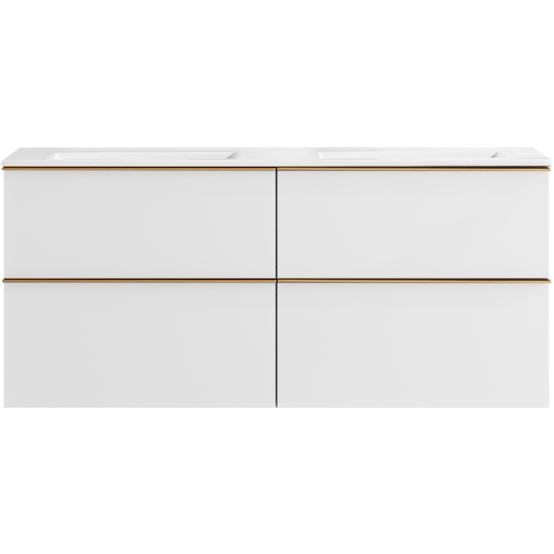 CERANO - Koupelnová skříňka pod umyvadlo s úchytkou Velora - bílá matná, zlatá úchytka - 140x49,8x45,2 cm