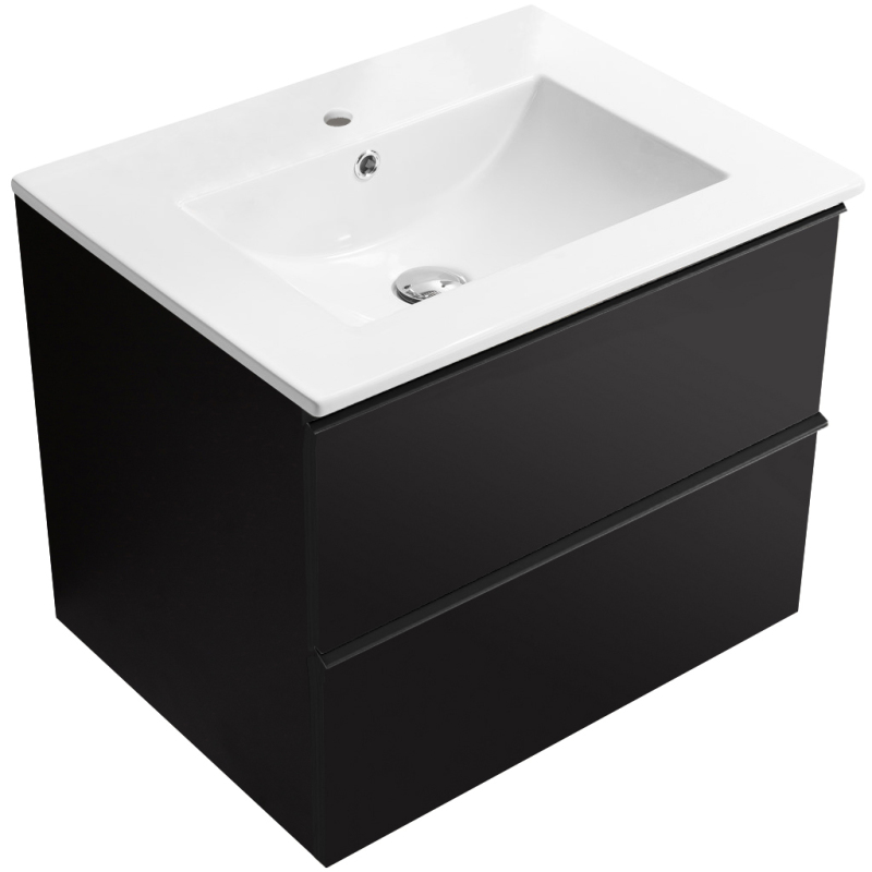 CERANO - Koupelnová skříňka pod umyvadlo s úchytkou Velora + keramické umyvadlo Todo - černá matná, černá úchytka - 60x49,8x46 cm