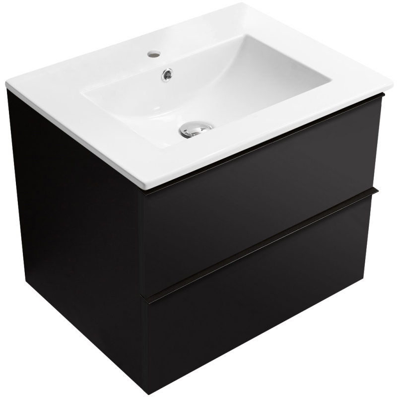 CERANO - Koupelnová skříňka pod umyvadlo s úchytkou Velora + keramické umyvadlo Todo - černá matná, černá úchytka - 59x53x46 cm