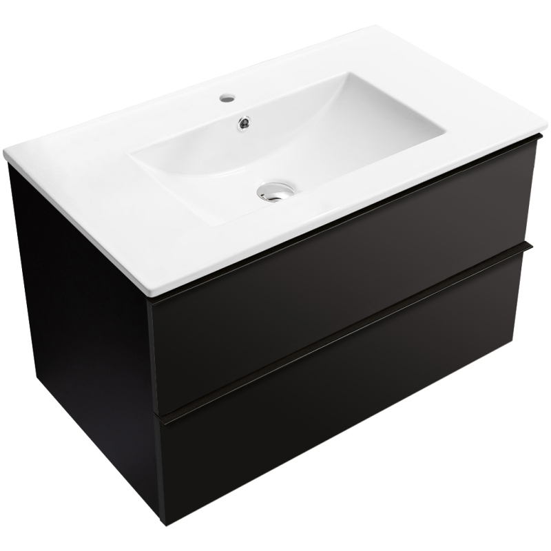 CERANO - Koupelnová skříňka pod umyvadlo s úchytkou Velora + keramické umyvadlo Todo - černá matná, černá úchytka - 79x53x46 cm