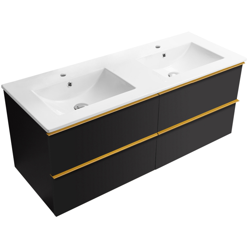 CERANO - Koupelnová skříňka pod umyvadlo s úchytkou Velora + keramické umyvadlo Todo - černá matná, zlatá úchytka - 119x53x45,2 cm