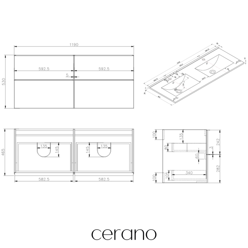 expedice do 7 dnůCERANO - Koupelnová skříňka pro umyvadla na desku Noira - šedá matná - 150x48x28 cm