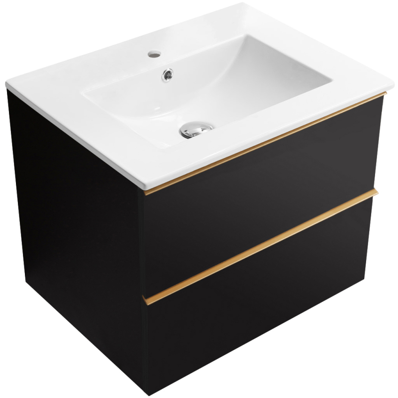CERANO - Koupelnová skříňka pod umyvadlo s úchytkou Velora + keramické umyvadlo Todo - černá matná, zlatá úchytka - 60x49,8x46 cm