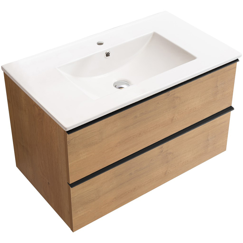 CERANO - Koupelnová skříňka pod umyvadlo s úchytkou Velora + keramické umyvadlo Todo - dub medový, černá úchytka - 70x49,8x46 cm