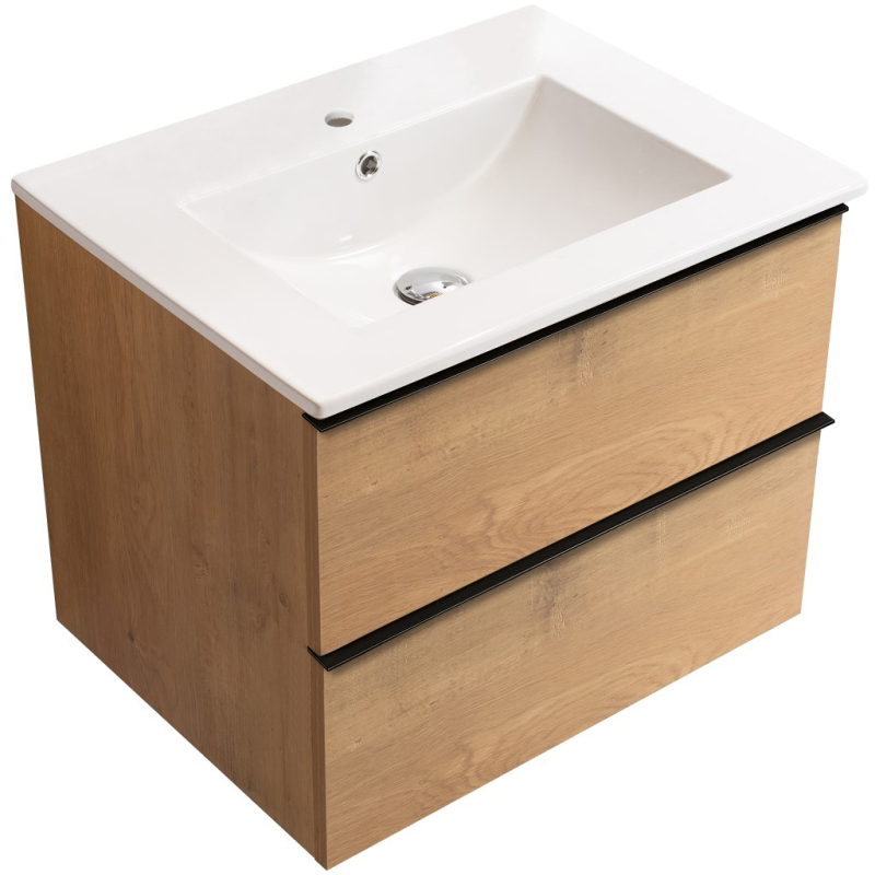 CERANO - Koupelnová skříňka pod umyvadlo s úchytkou Velora + keramické umyvadlo Todo - dub medový, černá úchytka - 69x53x46 cm