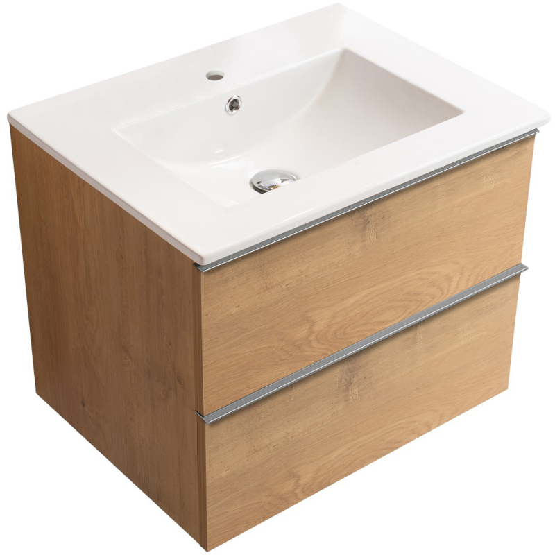 CERANO - Koupelnová skříňka pod umyvadlo s úchytkou Velora + keramické umyvadlo Todo - dub medový, chromová úchytka - 59x53x46 cm